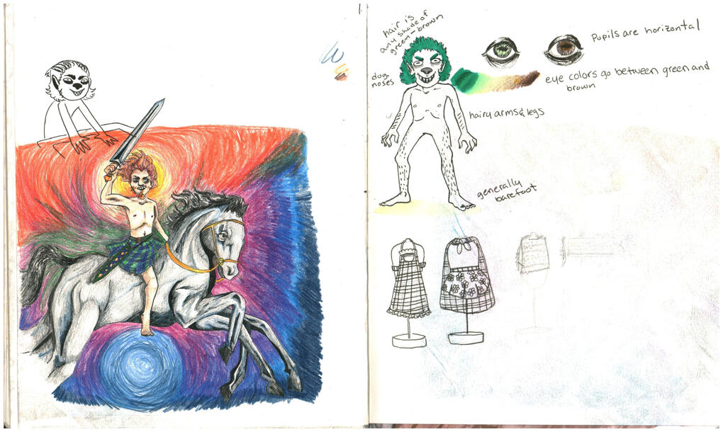 I primarily work in illustration and painting. I am better at traditional art than digital, but I enjoy making MSPaint Babes. Portraits and characters are my specialty. I enjoy working with ink and watercolor, or colored pencils most.I have designed tattoos, character sheets, and more in the past